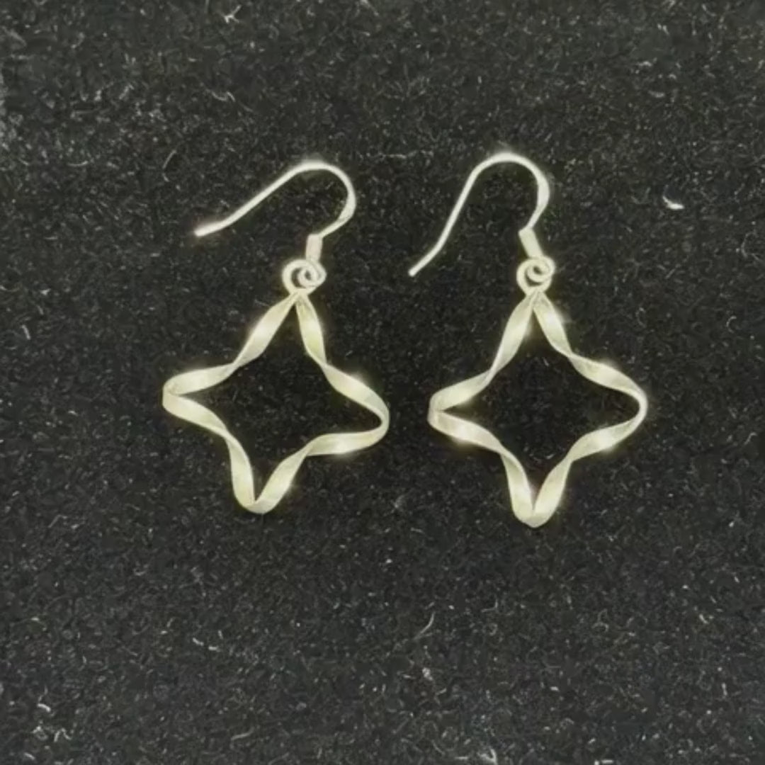 A twisted silver wire forms a radiant four-point star. Light, modern, and full of symbolic energy.