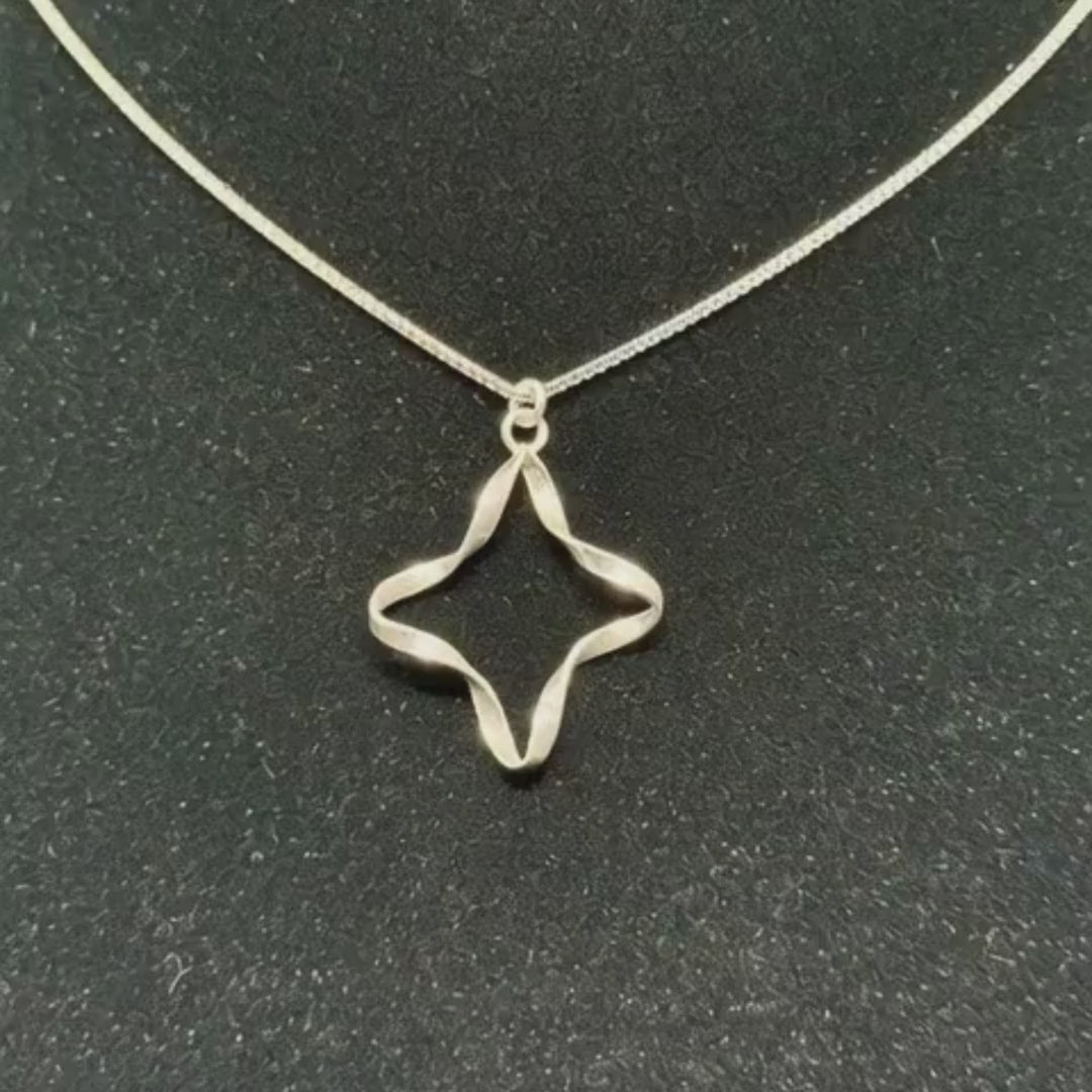 A twisted silver wire forms a radiant four-point star. Light, modern, and full of symbolic energy.