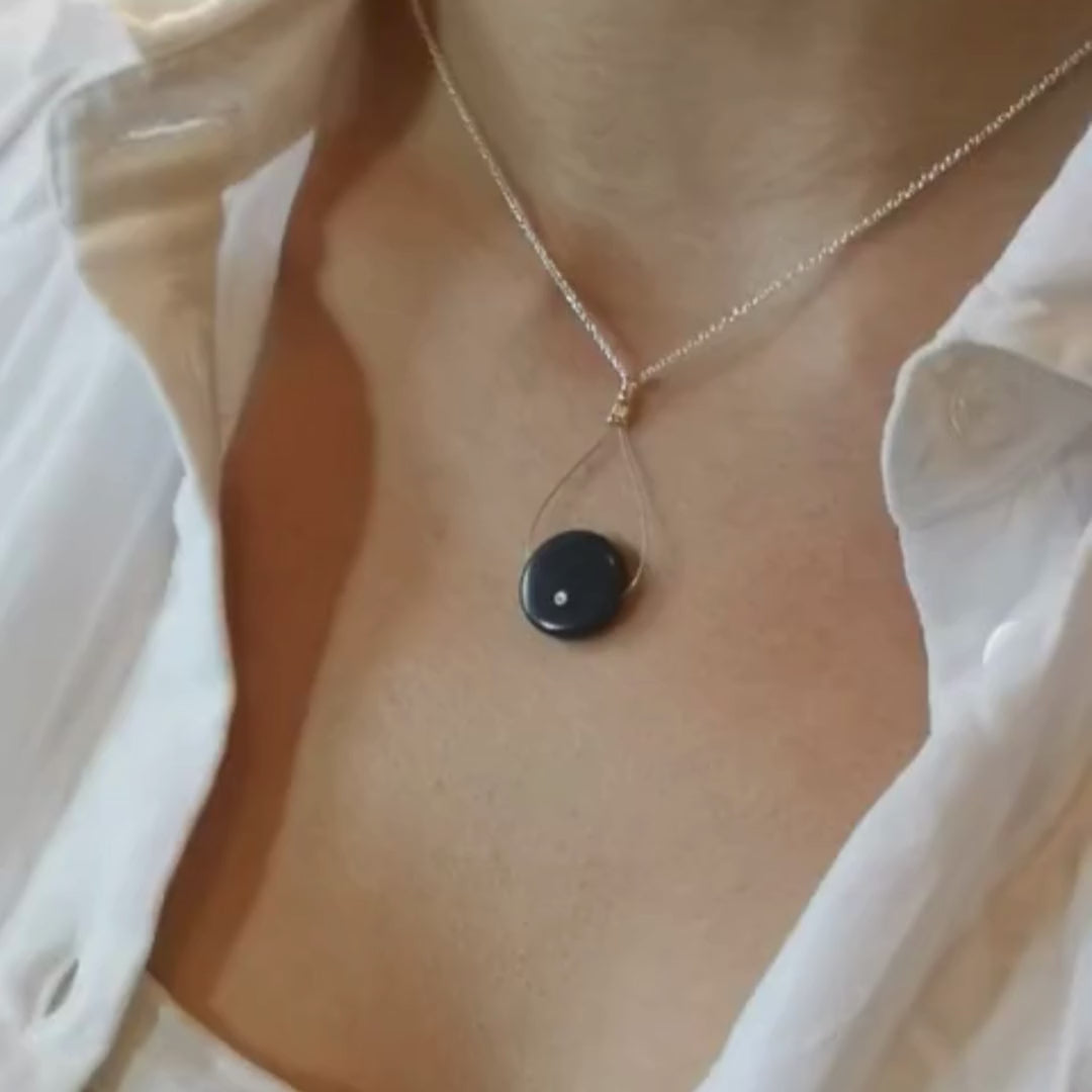 The Starry Night Necklace is a hand-carved vegetable ivory 15mm coin, set with an individually placed natural diamond that creates the quiet sparkle of a night sky. Smoothly polished and framed in sterling silver hanging from an 18" long silver chain, this piece blends organic warmth with refined elegance. A modern, understated design perfect for both daily wear and special occasions.
